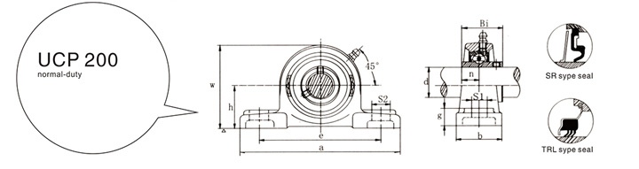 UCP series spherical bearing with seat is the most representative form of bearing assembly. The bearing seat P has a flat bottom and solid. This series has two types: UCP200 and UCP300. UCP300 series bears more load than UCP200 series. Because the root of the mounting part of the bearing seat is equipped with a reinforcing rib, it is a high-strength structure for compliance in all directions. In addition, bearing seat P can also be connected with UK, UEL, NA series bearing components, and UK module pass circular taper hole (UKP), and the nominal model of the applicable adapter sleeve is attached to the module engineering model. The main uses of this series: transmission device, fitness equipment, harvester, etc. For example, the cast steel outer spherical bearing with seat HCP207 (UELP207), the solid seat outer spherical bearing UCP205, HCP206 (UELP206), and the FGJ205 single outer spherical bearing with seat and FGJ double outer spherical ball bearing (one bearing seat is equipped with two outer spherical ball bearings) designed according to the customer's requirements have been applied to the corn harvester and peanut harvester, and have been widely praised by customers after use.