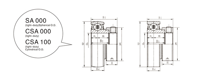 The main feature of NA200 series (or UEL200 series) and SA200 series (or UE200 series) outer spherical bearings is that the upper end of the bearing has a certain eccentricity, and the eccentric sleeve with the same eccentricity cooperates with it. This kind of bearing can also be said to be a special bearing. Because it is mainly used in agricultural machinery (harvester, straw returning machine, thresher, etc.), this kind of outer spherical ball bearing is mainly used in the layout with relatively strong jumping. The cooperation of eccentric layout can effectively reduce the strong jumping. In addition, this type of bearing is mostly used in conjunction with steel plate stamping seats, and is used in the parts between shafts and where the installation position is restricted.
