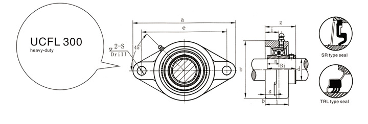 Bearing pedestal FL and UC can form UCFL200 and UCFL300 series. Similarly, it can also work with UK, UEL (NA), UB, SB and other components. The UCFL series combination is light in structure and convenient in installation. It is suitable for installation in the transmission part with small area. It is also suitable for installation in the vertical plane such as the mechanical side as well as the UCF series. Because the center distance of the two mounting bolt holes of the diamond bearing block is the same as the center distance of the two diagonal bolt holes of the square bearing block, they are interchangeable with each other. The SBLF200 series of spherical bearing with seat is a bearing with diamond seat designed for the purpose of lightweight. There are 7 models in this series from SBLF201 to SBLF207. Bearing pedestal LF can also be assembled with UB (SB) and UE (SA). These products are mainly used in packaging machinery, fruit sorter and other equipment.